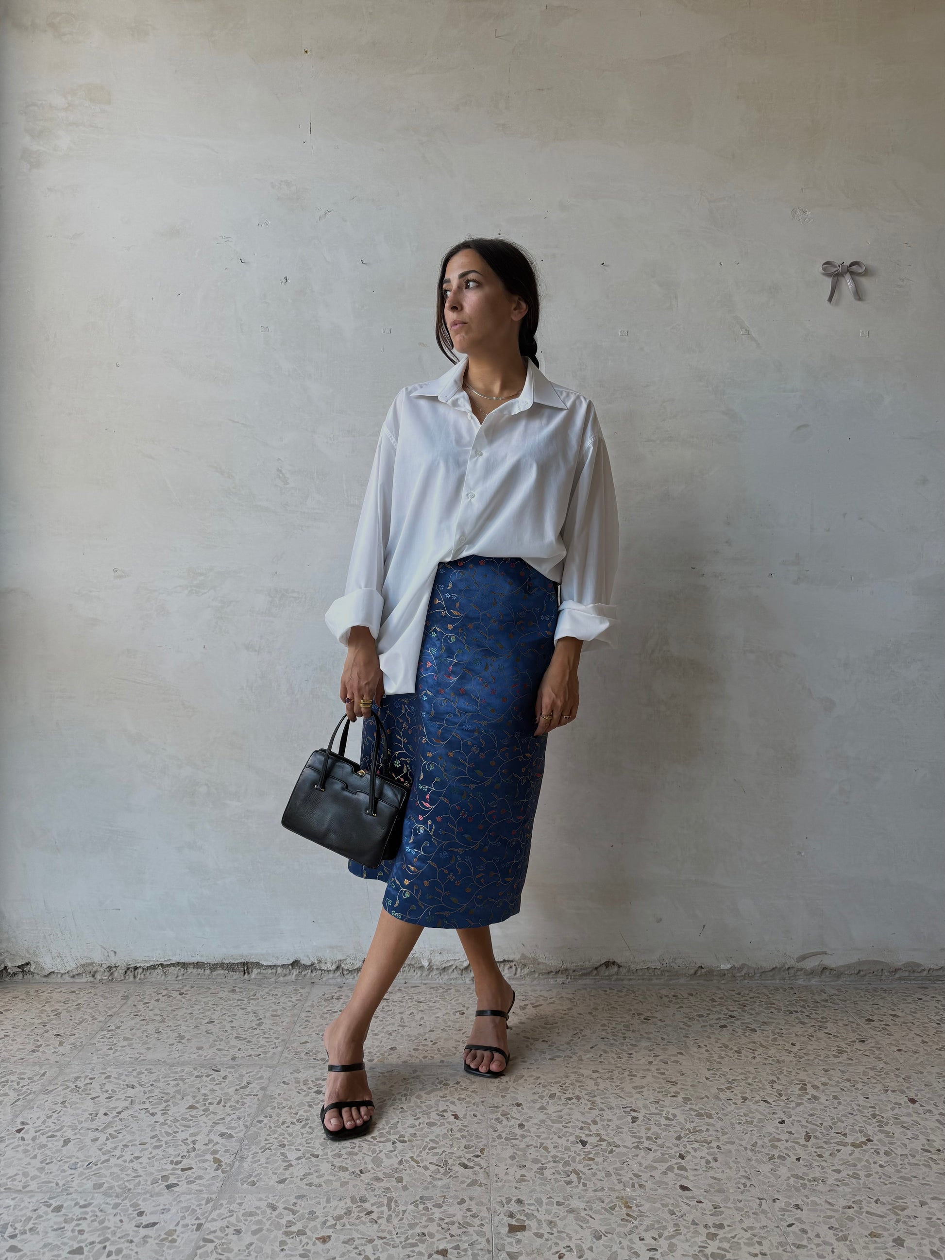 Camicia in cotone bianco, con colletto a punta e chiusura frontale con bottoni. Maniche lunghe con polsini abbottonati e linea regolare. Orlo dritto.