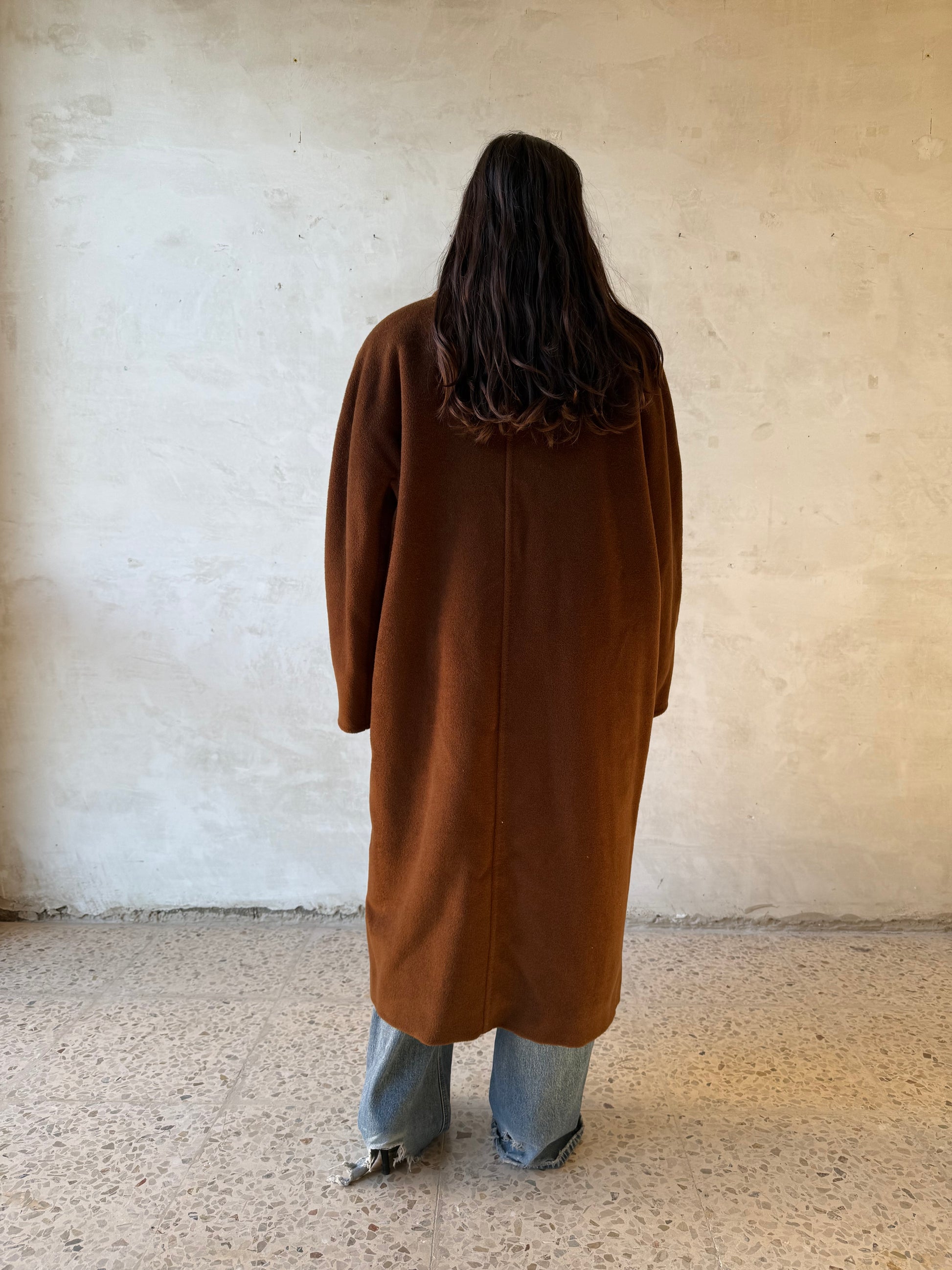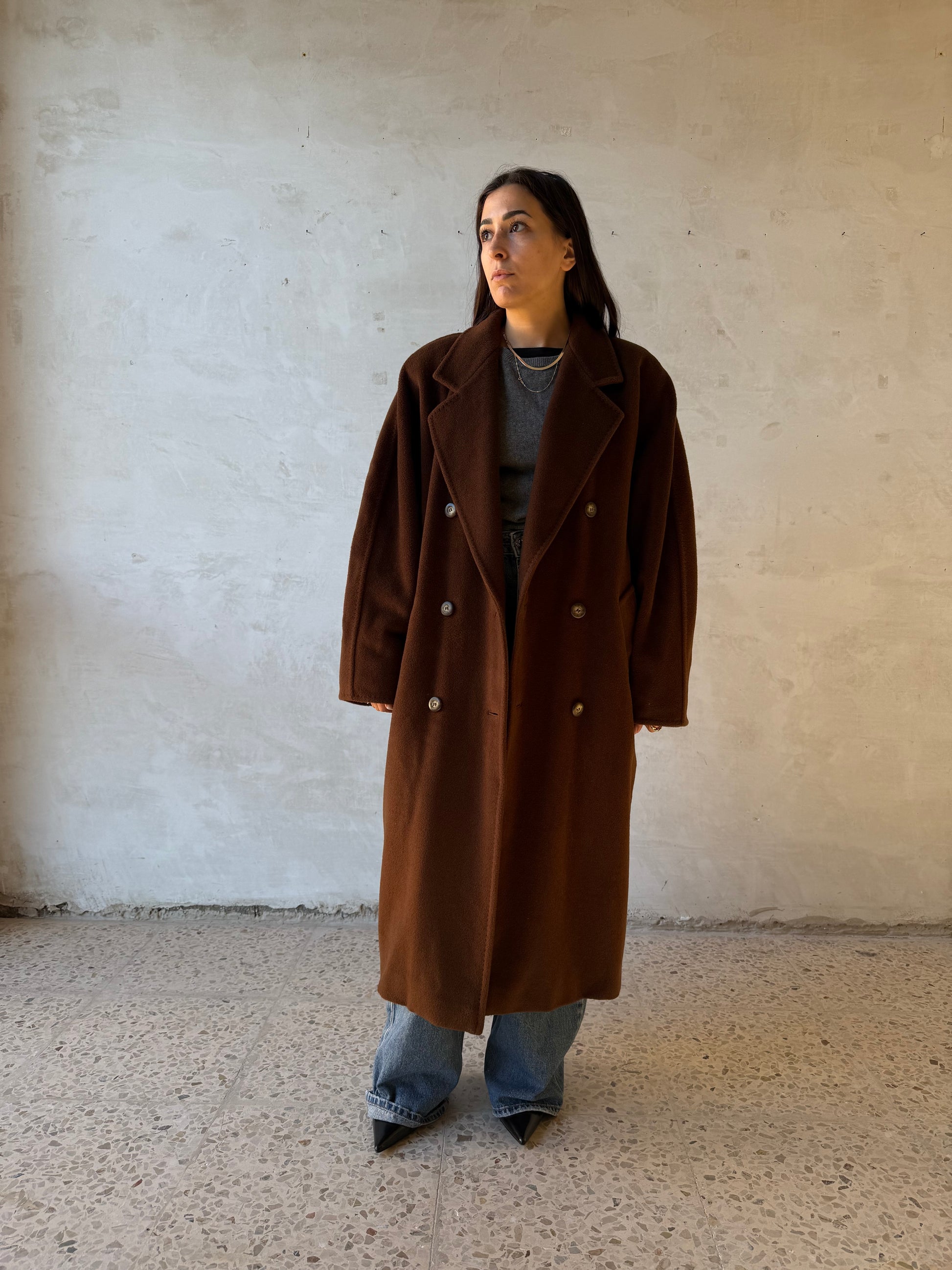 Cappotto Max Mara vintage in 100% lana vergine, doppiopetto, dalla linea morbida e leggermente over.