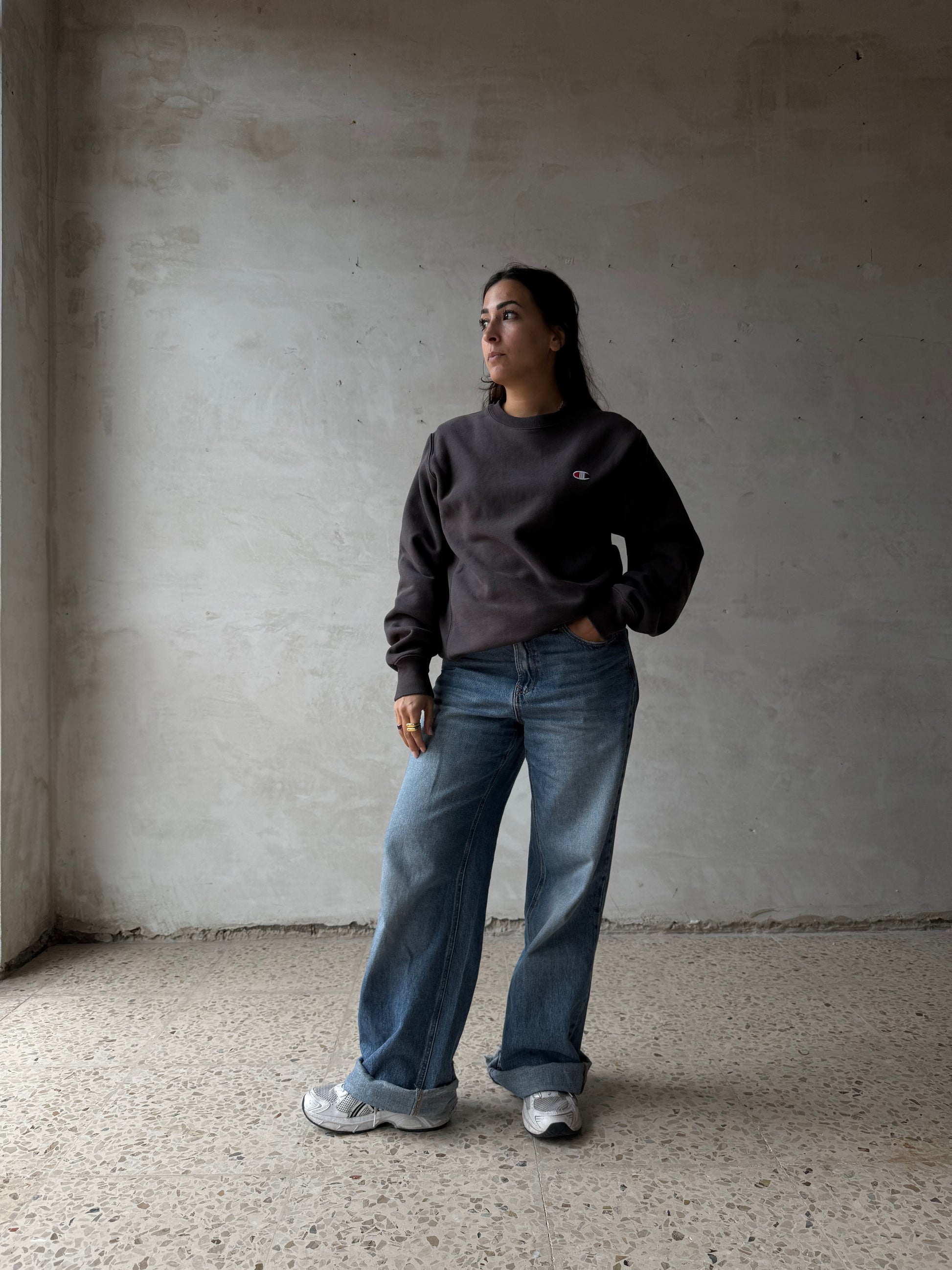 Felpa Champion Reverse Weave originale in morbido cotone, dal taglio unisex e dalla vestibilità rilassata, caratterizzata da un elegante colore grigio scuro. Il modello presenta il classico logo “C” ricamato sul petto a sinistra e finiture a costine su collo, polsi e fondo, che enfatizzano la struttura iconica delle felpe Champion. Grazie alla costruzione Reverse Weave, la felpa risulta particolarmente resistente ai lavaggi e agli utilizzi frequenti, mantenendo forma e comfort.